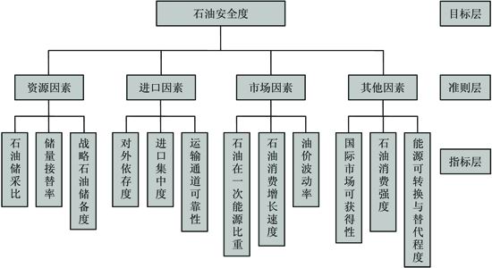 目標層——石油安全度S,它是石油安全狀況好壞的綜合體現。