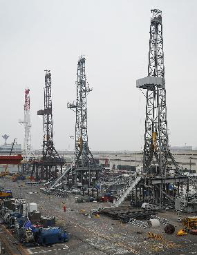 宏華石油設備有限公司在四川廣漢的鉆井生產基地(5月20日攝)。