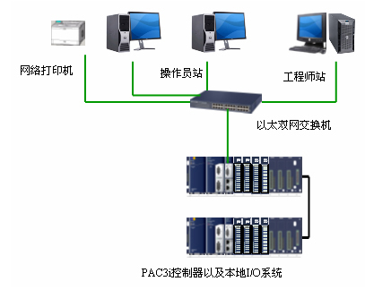 此系統中設立了一臺機操作員站HMI站和一臺工程師維護工作站。